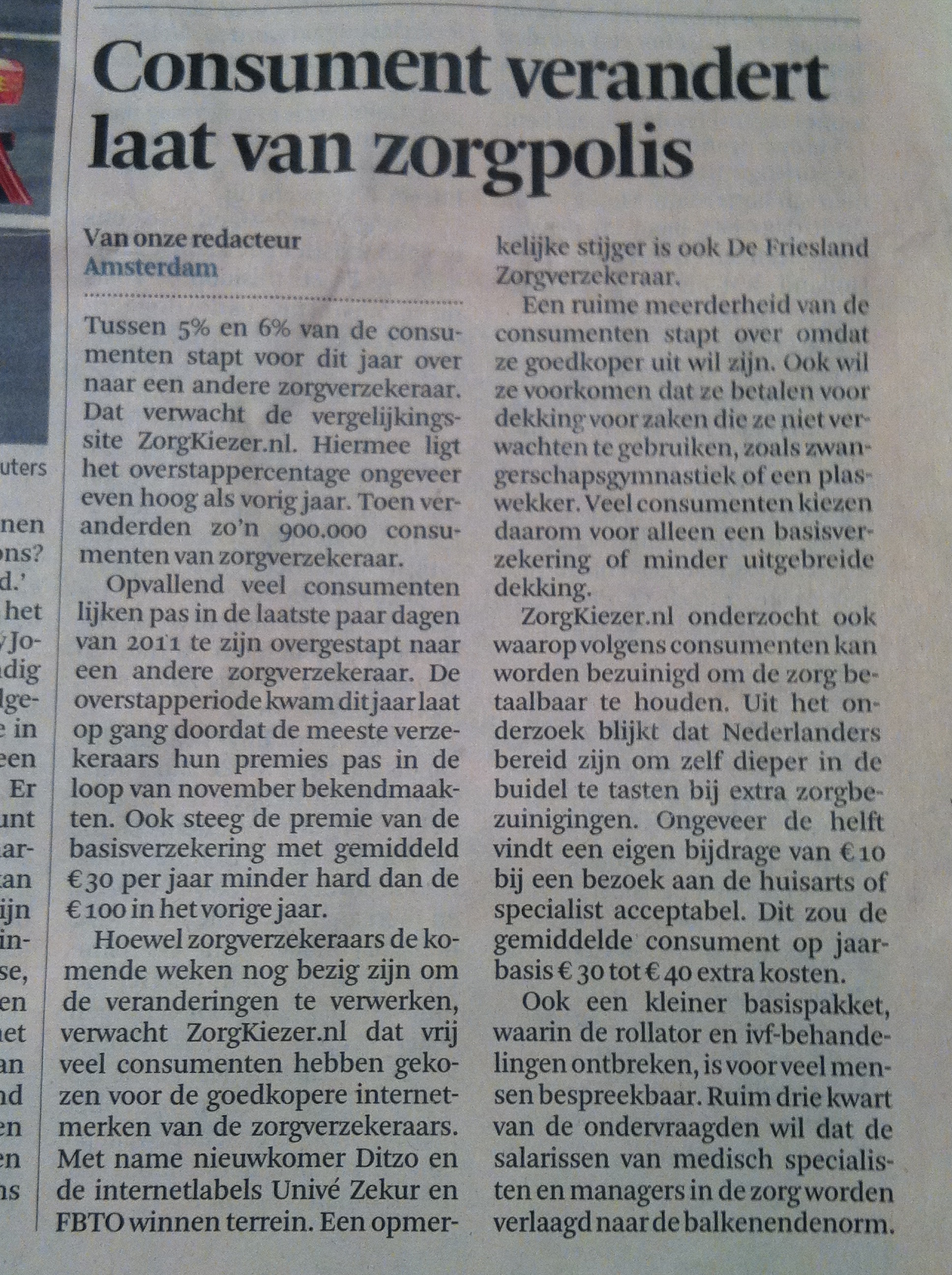 Overzicht > Consument verandert laat van zorgpolis (FD)