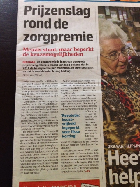 ZorgKiezer.nl in het AD, zorgverzekering 2014