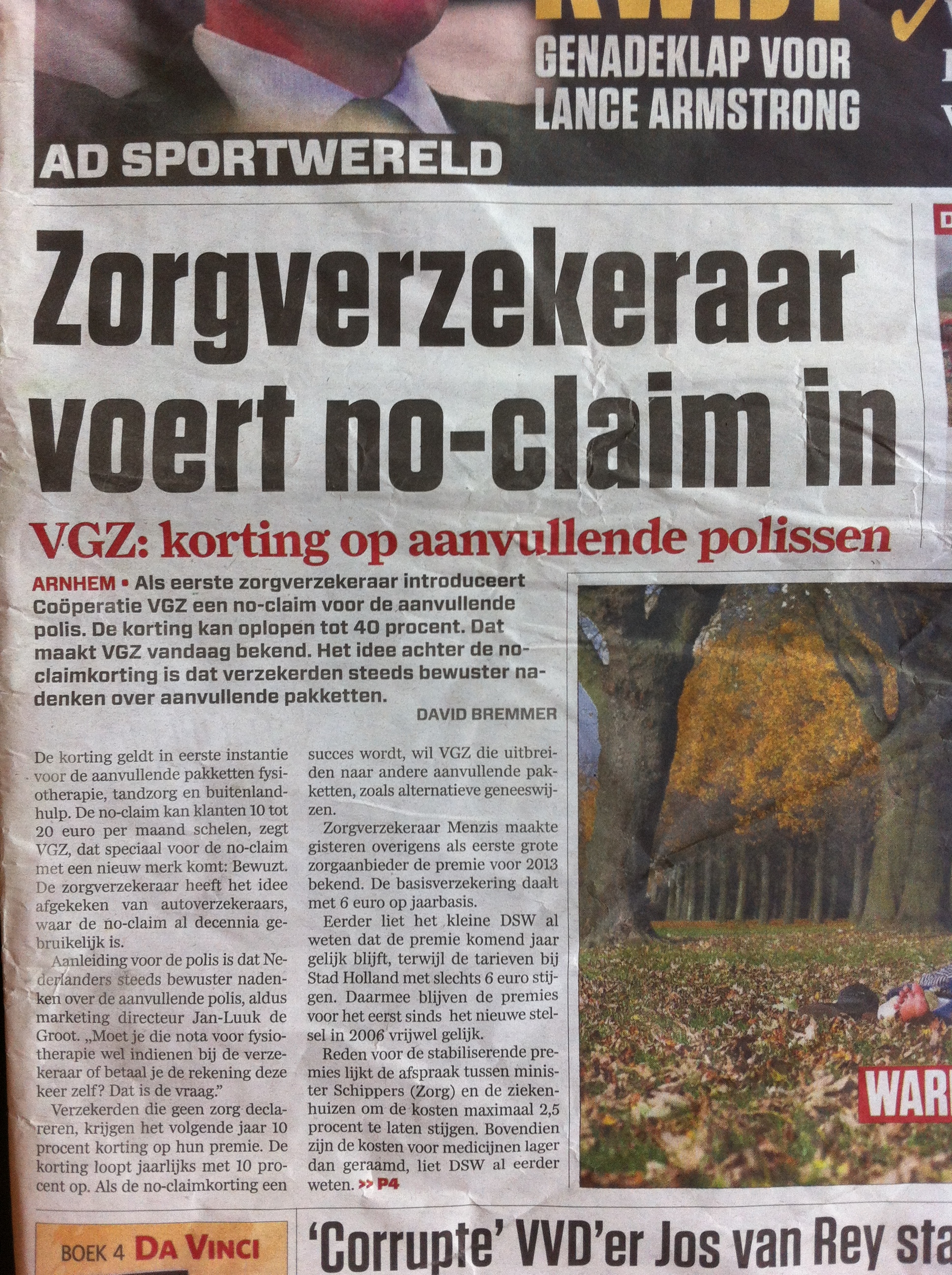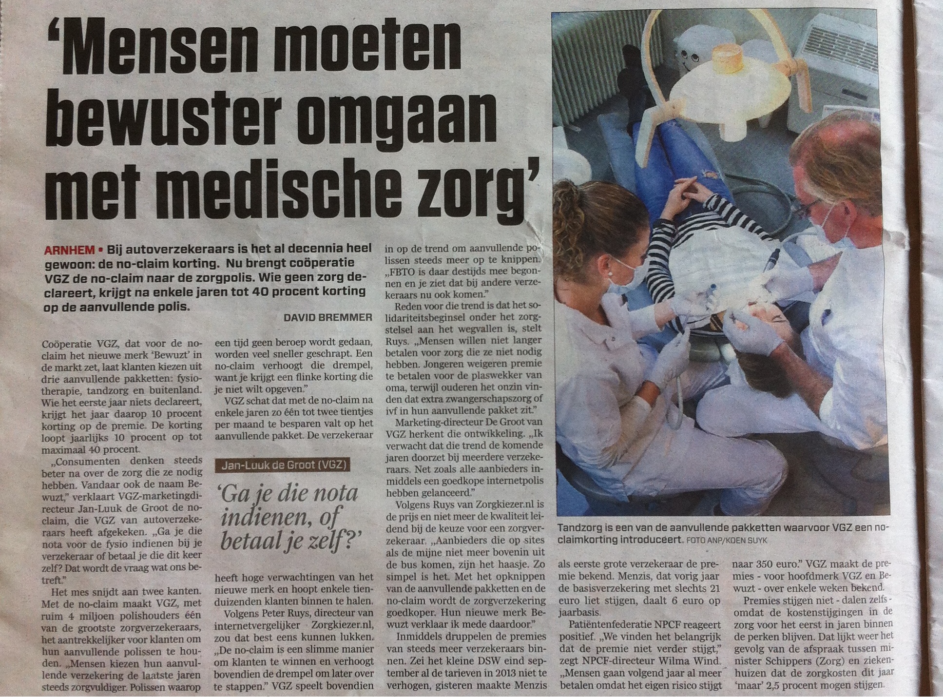 Vanochtend gaf zorgverzekeraar VGZ aan om als eerste een no claim korting te gebruiken bij de zorgverzekering. Peter Ruys gaf hierop reactie in het Algemeen Dagblad.