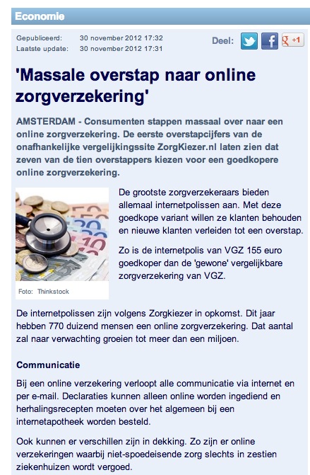 ZorgKiezer.nl op Nu.nl over overstappers naar online zorgverzekering