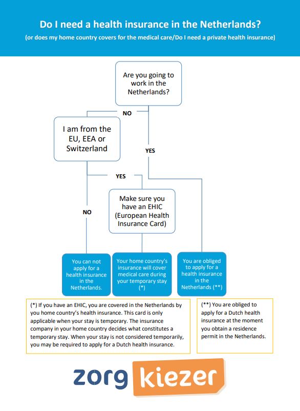 Everyone who works or lives in the Netherlands is obligated to have a health insurance. All the basis needs for health care are covered in this the basic insurance. You can extend the basic health insurcance with an additional health insurance to cover more medical care.