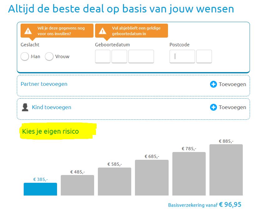 Step 2: ‘’Kies je eigen risico’’ – “Choose your the deductible excess”