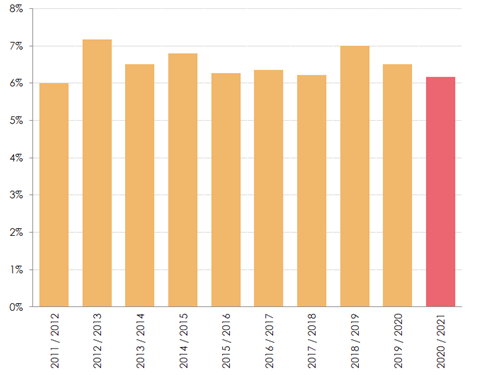 Het percentage is bijna exact gelijk aan het aantal overstapper in 2019. Toen koos 6,5% van de Nederlanders voor een nieuwe zorgverzekering, zo meldt Zorgverzekeraars Nederland. Het aantal overstappers schommelt al jaren tussen de 6 en 7%.
