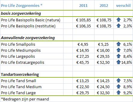 Pro Life zorgverzekeringen maakt zorgpremie 2012 bekend