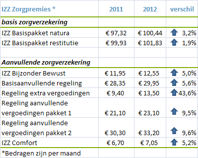 IZZ maakt zorgpremies 2012 aanvullende zorgverzekeringen bekend